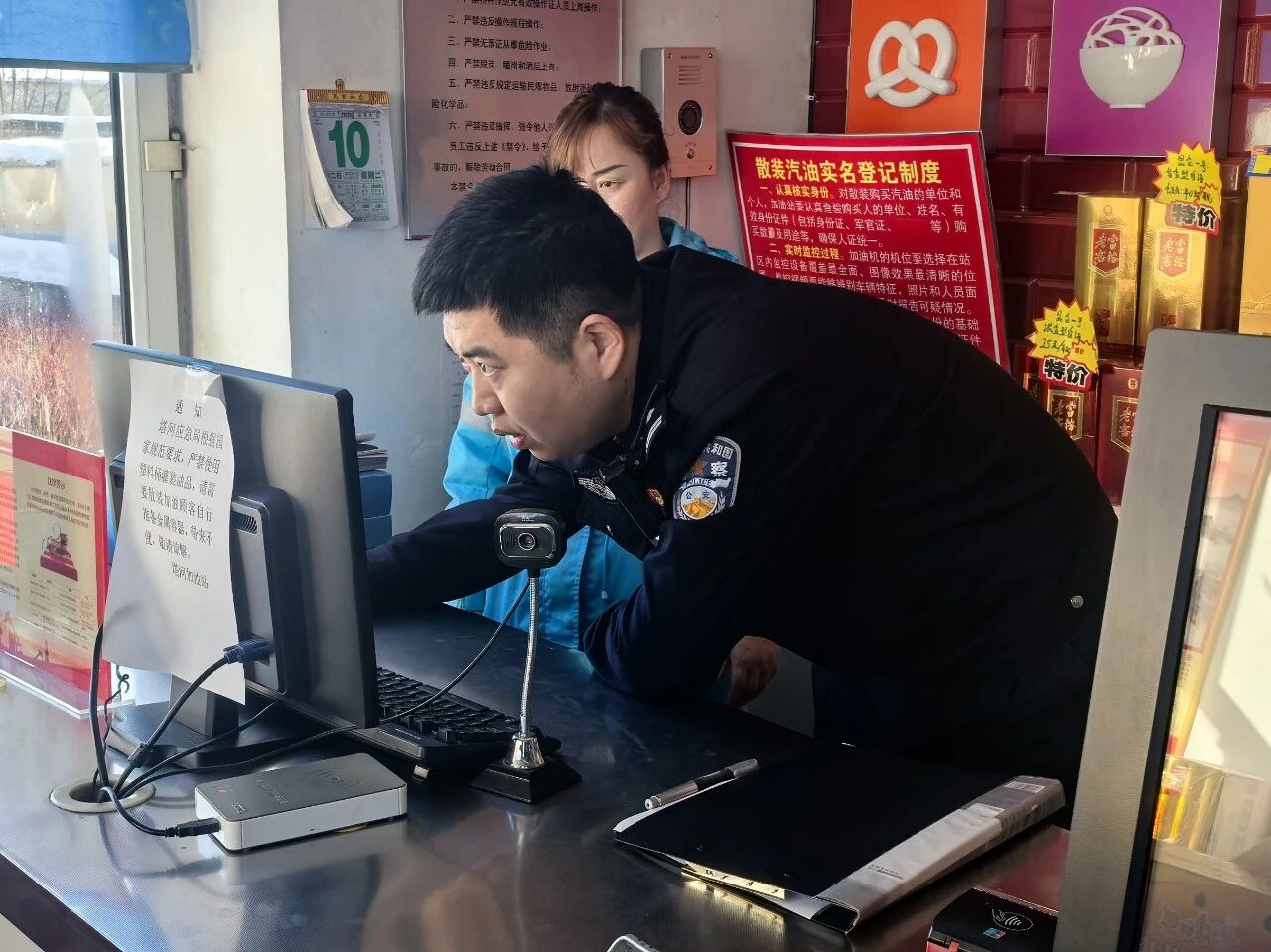 检查中,民警坚持问题导向,采取实地核查与查阅台账相结合的方式,对加油站安全生产责任制落实、管理制度建立等情况进行全面“体检”。重点核验一键报警系统运行状态、散装汽油购买实名登记制度执行情况,细致检查站内及周边视频监控覆盖率与完好度、消防器材配备是否符合标准等,确保不留死角、不留盲区。针对检查中发现的风险隐患,民警现场督促加油站负责人立行立改,明确整改要求和时限。