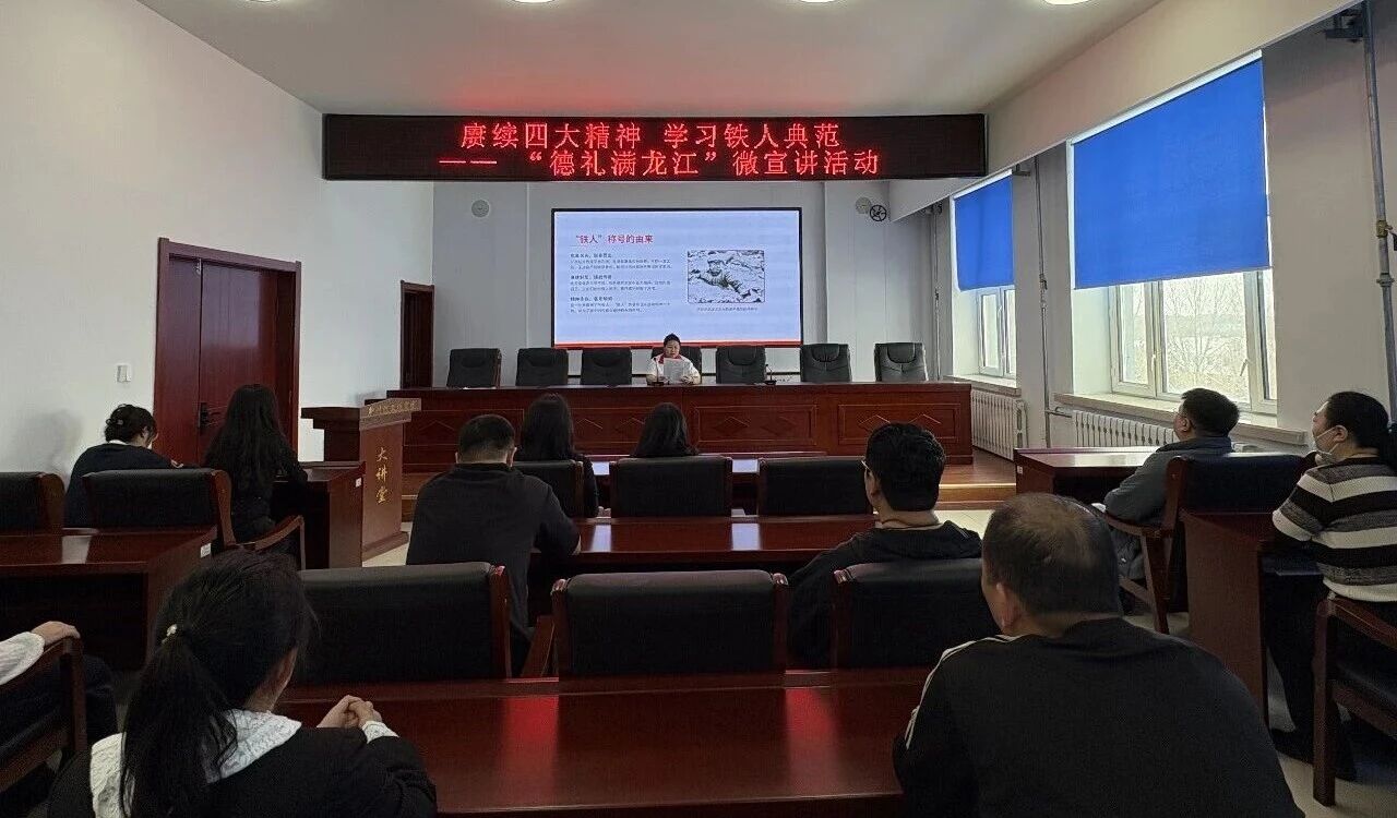 宣讲现场,志愿者以黑土地孕育的红色精神财富为切入点,生动讲解东北抗联精神、北大荒精神、大庆精神、铁人精神的深刻内涵。活动重点围绕铁人王进喜的英雄事迹,深情讲述了上世纪60年代石油大会战中,他发出“宁可少活20年,拼命也要拿下大油田”的豪迈誓言,还原了“人拉肩扛运钻机”“端水开钻保生产”“纵身泥浆池制井喷”等感人场景,同时,深刻解读了这些精神所蕴含的爱国主义、集体主义、艰苦奋斗和无私奉献的核心要义。与会人员认真聆听、深受触动,现场学习氛围十分浓厚。