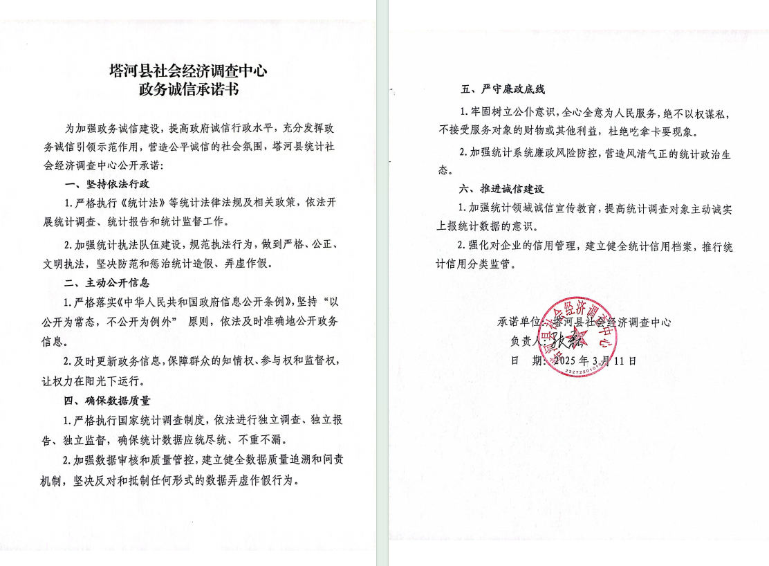 2025年塔河县社会经济调查中心政务诚信承诺书