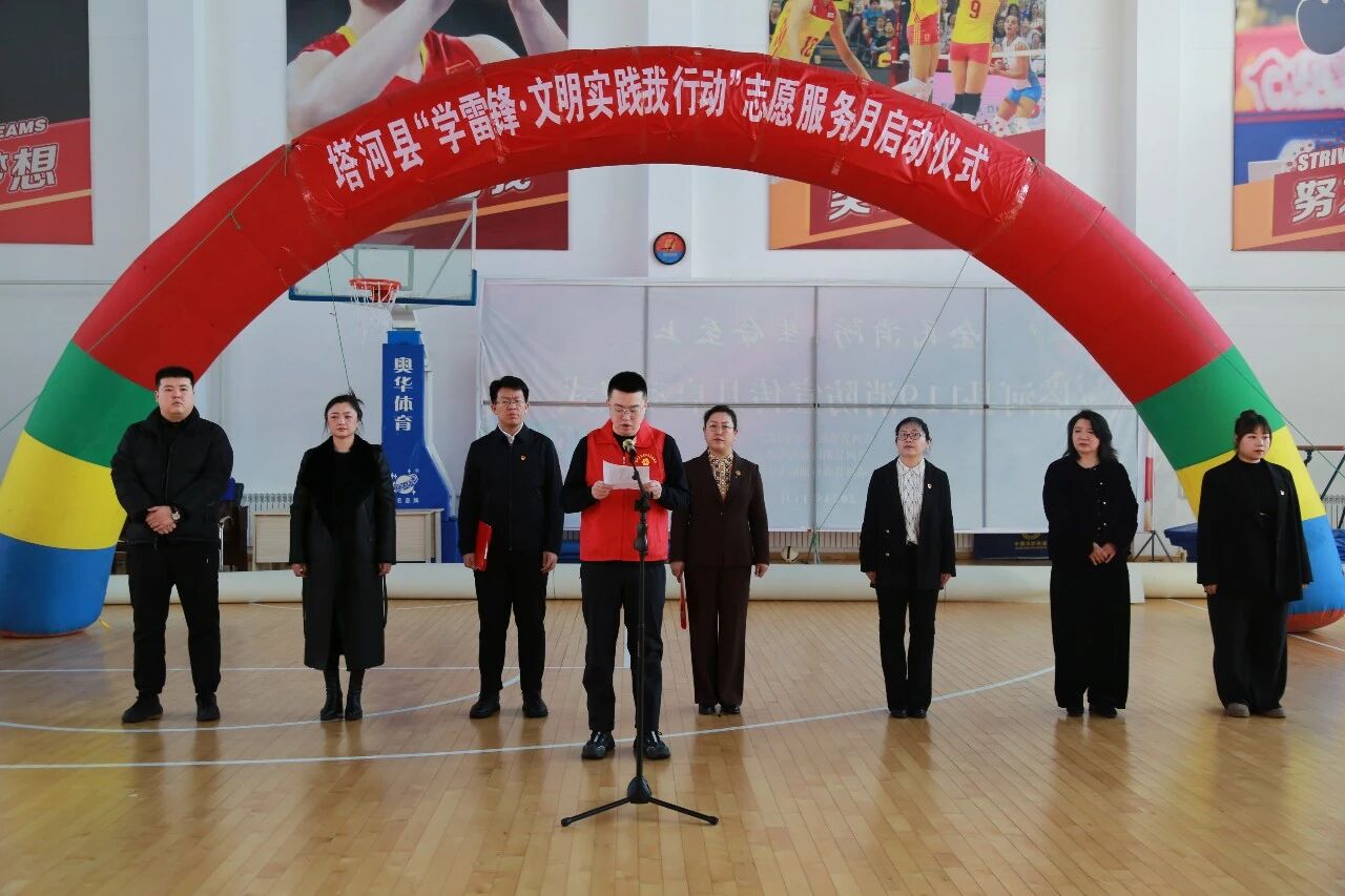 3月5日,塔河县举办“学雷锋•文明实践我行动”志愿服务月启动仪式。县委常委、组织部部长王丽出席活动并致辞,全县30余支志愿服务队、300余名志愿者参加活动。仪式现场气氛热烈而庄重。