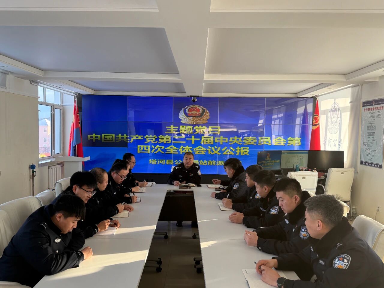 为深入学习贯彻党的二十届四中全会精神,以政治引领锤炼过硬公安队伍,以能力作风提升履职质效,近日,塔河县公安局站前派出所创新学习形式、丰富实践载体,通过“早会领学+实地研学+誓词砺学”三维联动模式,切实把学习成果转化为深化理论武装、守护辖区平安、服务人民群众的强大动力,推动党的二十届四中全会精神在基层公安一线落地生根。