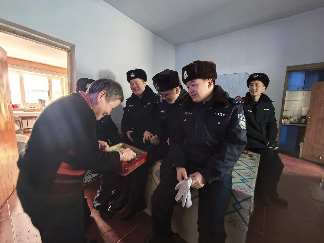清扫过程中,民警一边忙碌,一边与老人亲切交谈,详细了解老人的身体状况、取暖情况和实际困难,反复叮嘱老人雪天尽量减少外出,注意用火用电安全,遇到困难第一时间联系派出所。看着民警们不畏严寒、挥汗如雨的身影,老人感动不已。清扫完毕,老人特意端出新鲜橘子,执意要送给民警品尝。“天这么冷,你们还惦记着我,真是比亲人还亲!”老人朴实的话语,让在场民警无不动容。小小的橘子,承载着老人的心意,更见证了警民之间鱼水情深。群众利益无小事,一枝一叶总关情。
