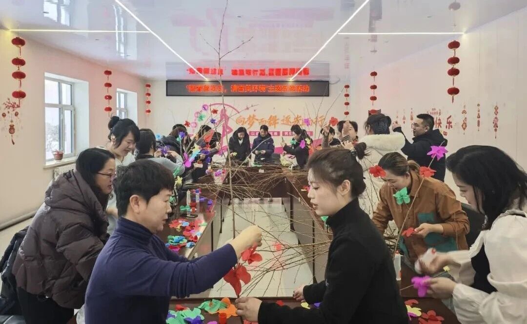 活动现场,社区工作人员向居民介绍东北传统皱纹纸花的制作方法。居民们热情高涨,纷纷动手尝试,将一张张皱纹纸变成寓意吉祥的纸花,现场满是新春的欢乐氛围。