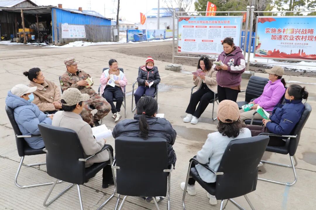 十八站乡创新活动形式,以“图书漂流”为载体,让书籍在村民间传递温度与力量。活动现场,参与者每人携带一本心仪好书,以书籍互换的形式解锁全新阅读体验。同时,活动专门设置“放下手机一小时”环节。大家围坐一起静心品读,踊跃分享阅读感悟,从《活着》中感悟生命的坚韧与厚重,到《额尔古纳河右岸》中领略鄂温克族山林文化的独特底蕴与人文之美。一本本好书在交流中传递思想力量,一段段感悟在分享中凝聚精神共鸣,让阅读成为连接心灵的桥梁。田间课堂,服务春耕生产。