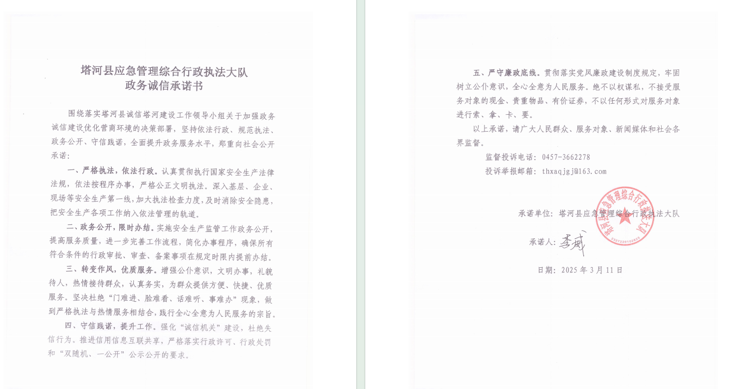 2025年塔河县应急管理综合行政执法大队政务诚信承诺书