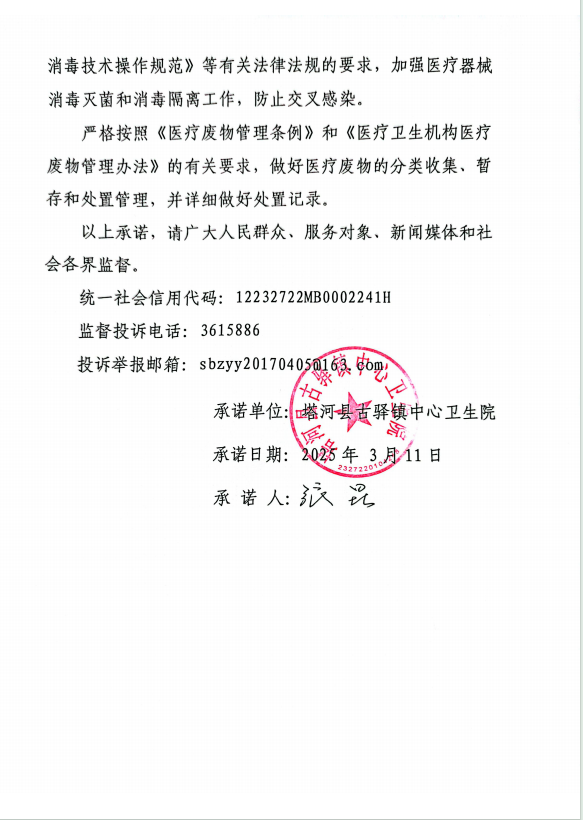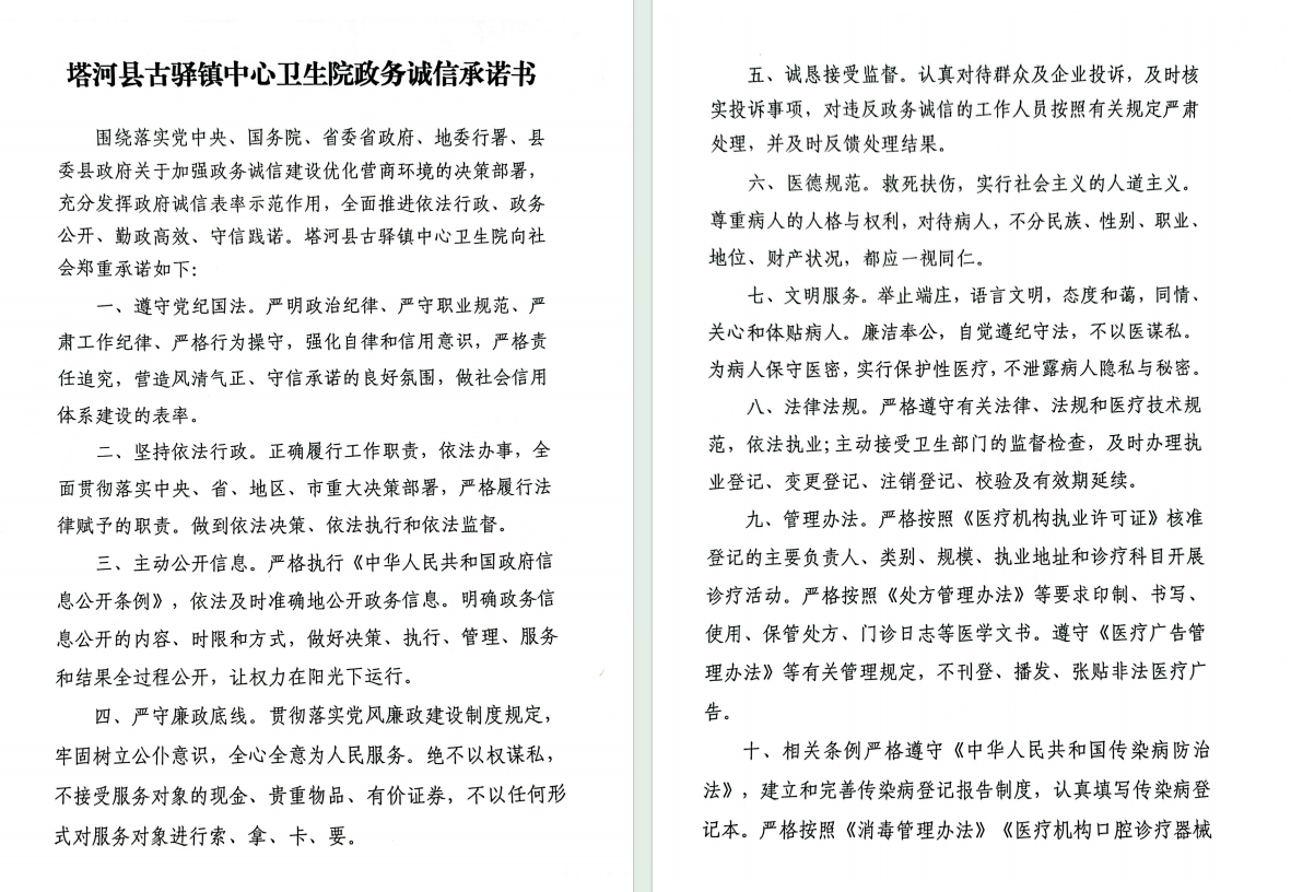 2025年塔河县古驿镇中心卫生院政务诚信承诺书
