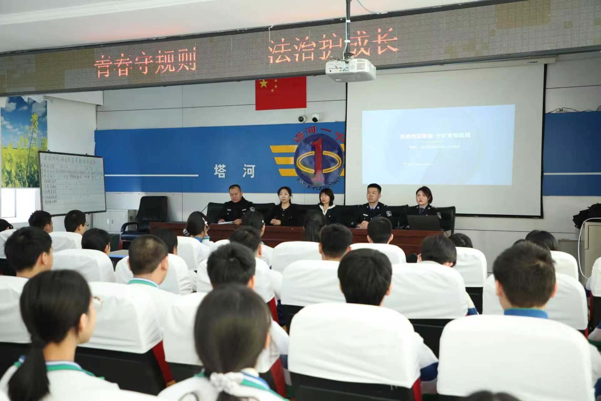为增强学生法治观念,预防校园欺凌,营造安全文明校园环境,塔河一中特邀塔河县公安局法制大队韩冬警官、建设派出所李昊宸警官开展“拒绝校园欺凌守护青春底线”新修订《中华人民共和国治安管理处罚法》法治宣讲活动。