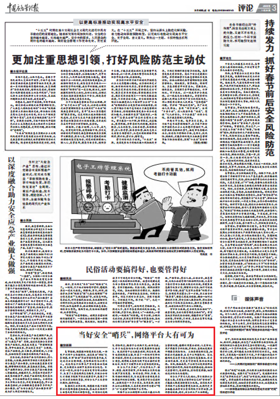 安全生产事关人民福祉,事关经济社会发展大局,只有各方都守好自己的“责任田”,才能最大限度消除盲区和死角。我们乐见更多网络平台展现其警觉与担当,也期待更多企业能真正将安全责任内化于日常运营,共同营造健康、稳定、安全的生产生活环境。